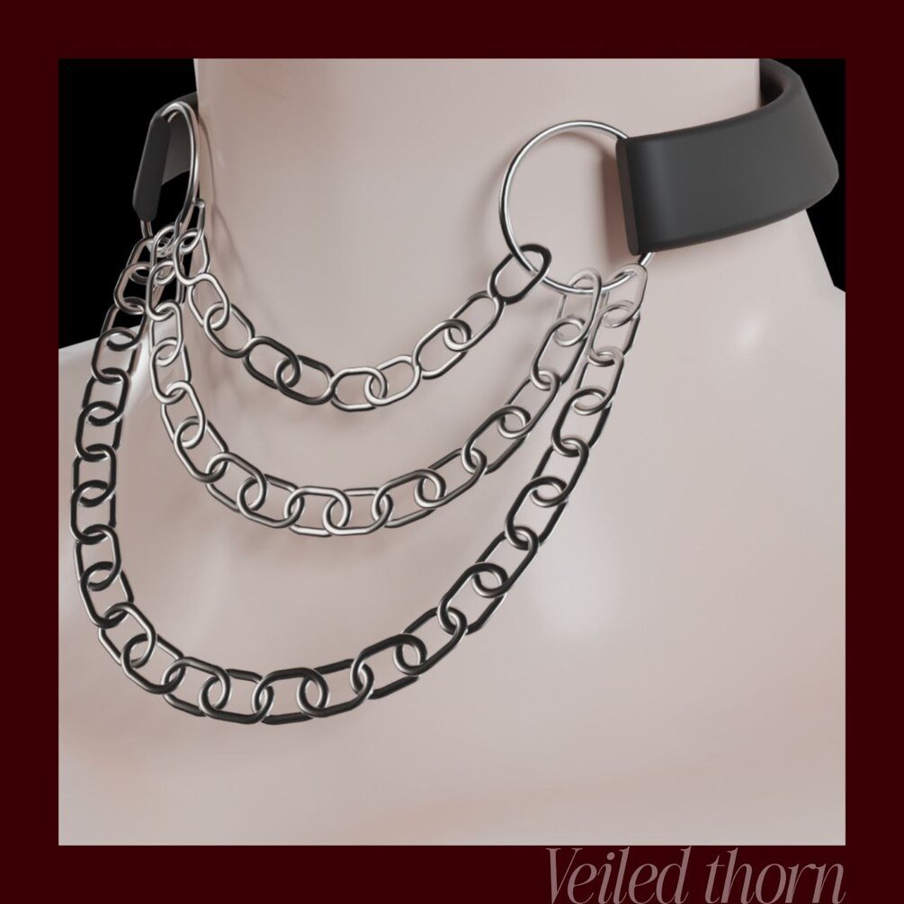Elevate your avatar’s style with this Draped Chain Choker/Collar designed for VRChat. Featuring three layered chains with a sleek metal finish, this accessory adds a bold and edgy touch to any look. Perfect for gothic, punk, cyber, or alternative aesthetics, the design balances elegance with strength — making it a standout piece for both casual hangs and themed worlds.