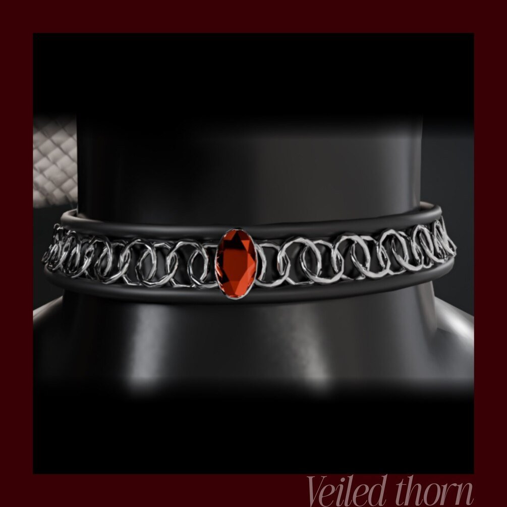 Add a touch of elegance and edge to your avatar with this intricately designed silver choker, featuring a looped chain pattern and a striking deep crimson gemstone centerpiece. Perfect for gothic, fantasy, or modern styles, this accessory is lightweight, versatile, and crafted with clean details for both casual wear and dramatic looks.