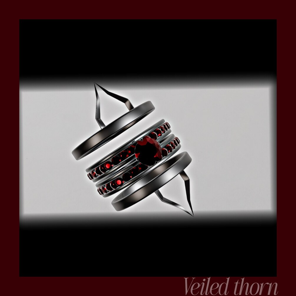 -Features a deep crimson gemstone at the center, radiating intensity and allure.