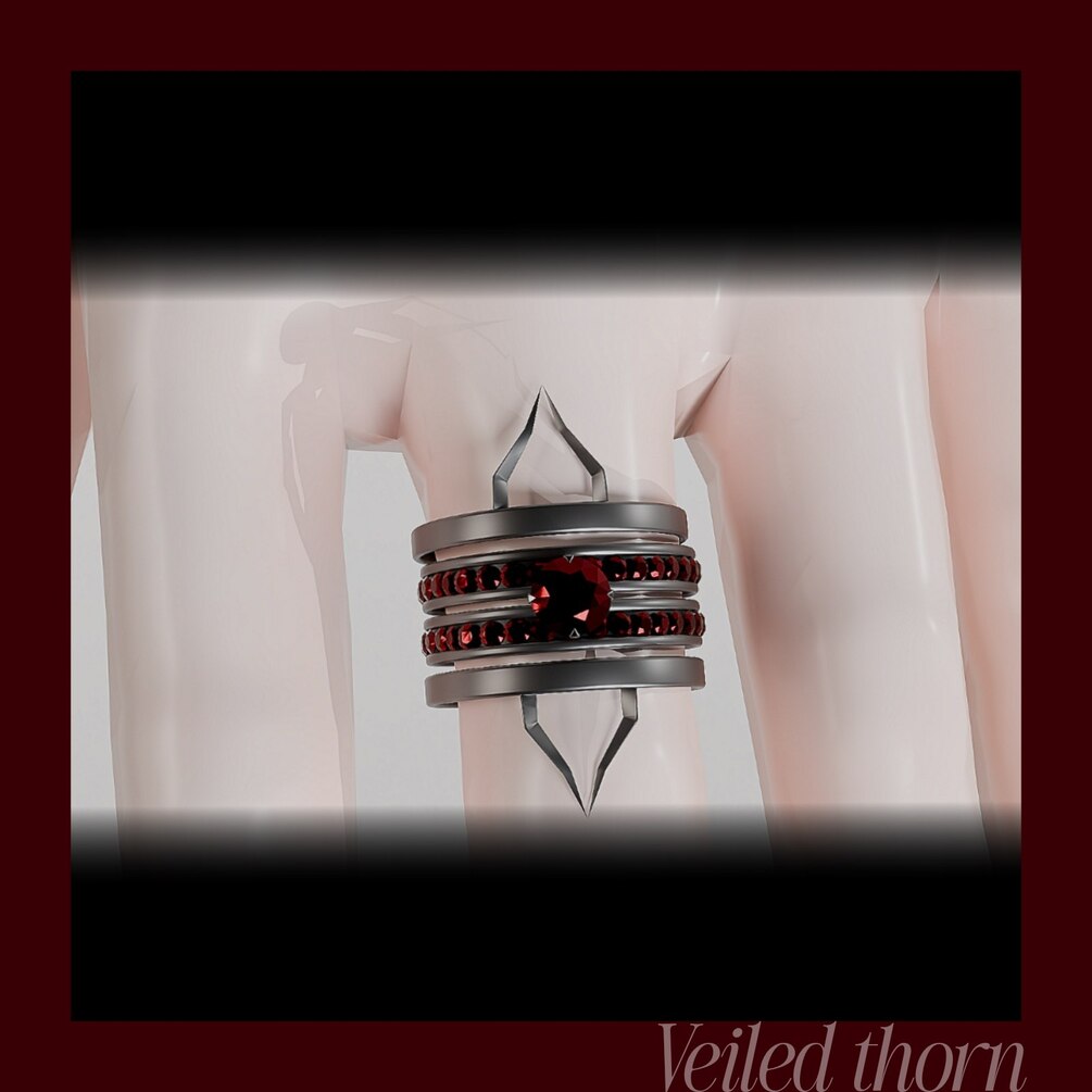 A striking red gemstone ring with layered metallic bands and a dramatic centerpiece, designed to feel ornamental and mystical rather than purely decorative vrchat asset.