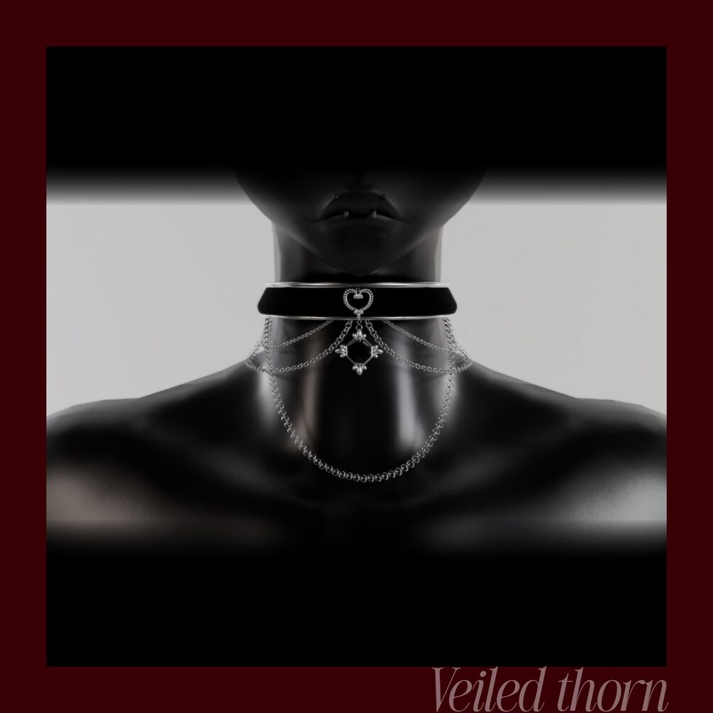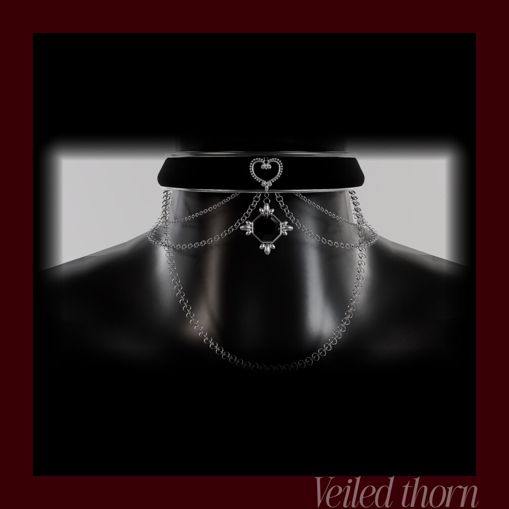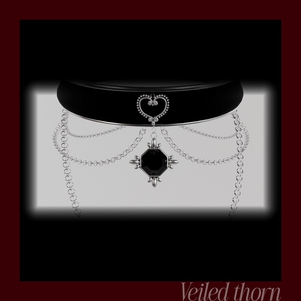 A darkly elegant VRChat accessory that blends a smooth black velvet-style band with layered silver chains and a crystal heart centerpiece. Lightweight, fully optimized, and ready for avatars—perfect for adding a touch of gothic romance to any outfit.