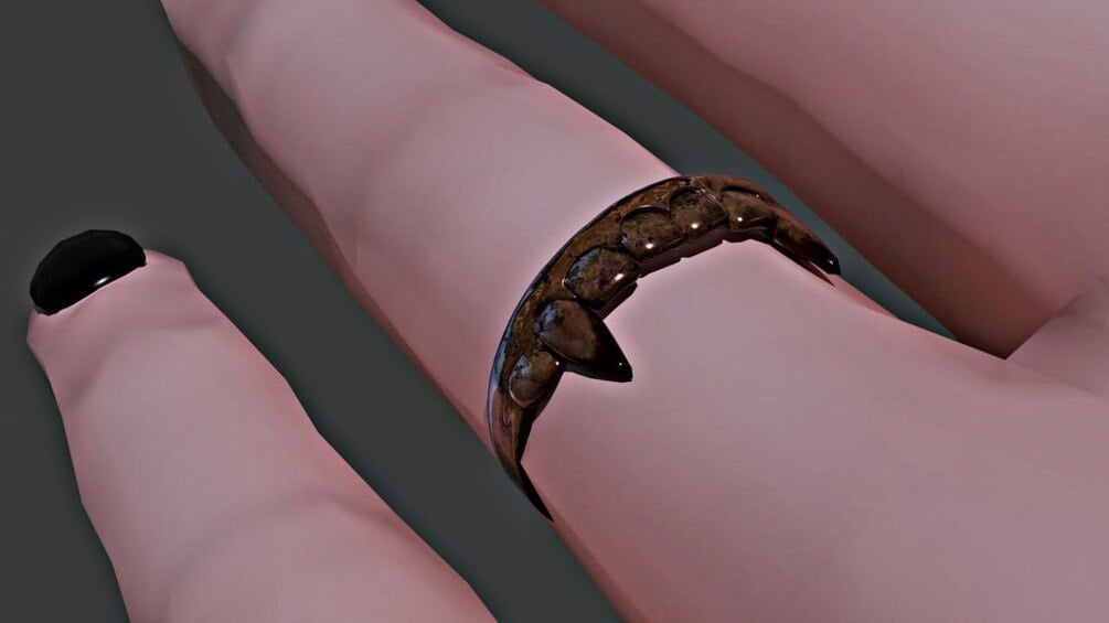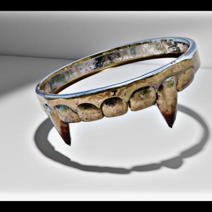 you will get a silver ring shaped in vampire phangs with blood stains on it!